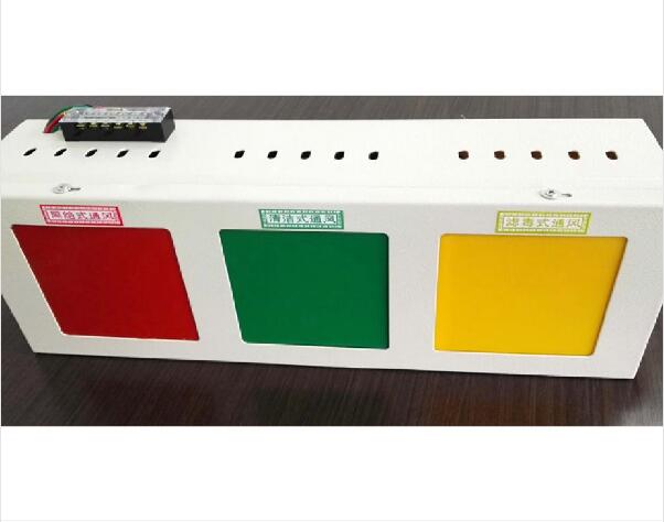 三防信號箱(通風方式信號燈箱)用于工程掩體內(nèi)部空氣質量狀態(tài)的顯示和報警,實現(xiàn)對控制柜傳來的報警的電子信號做出反映。具有聲光報警兩種報警方式,具有良好的顯示性能和視覺效果。主要對三種空氣質量情況進行報警:清潔、隔絕、濾毒。燈箱分別用三種顏色的燈光來對三種不同空氣情況報警:清潔——綠色燈光;隔絕——紅色燈光;濾毒——黃色燈光。